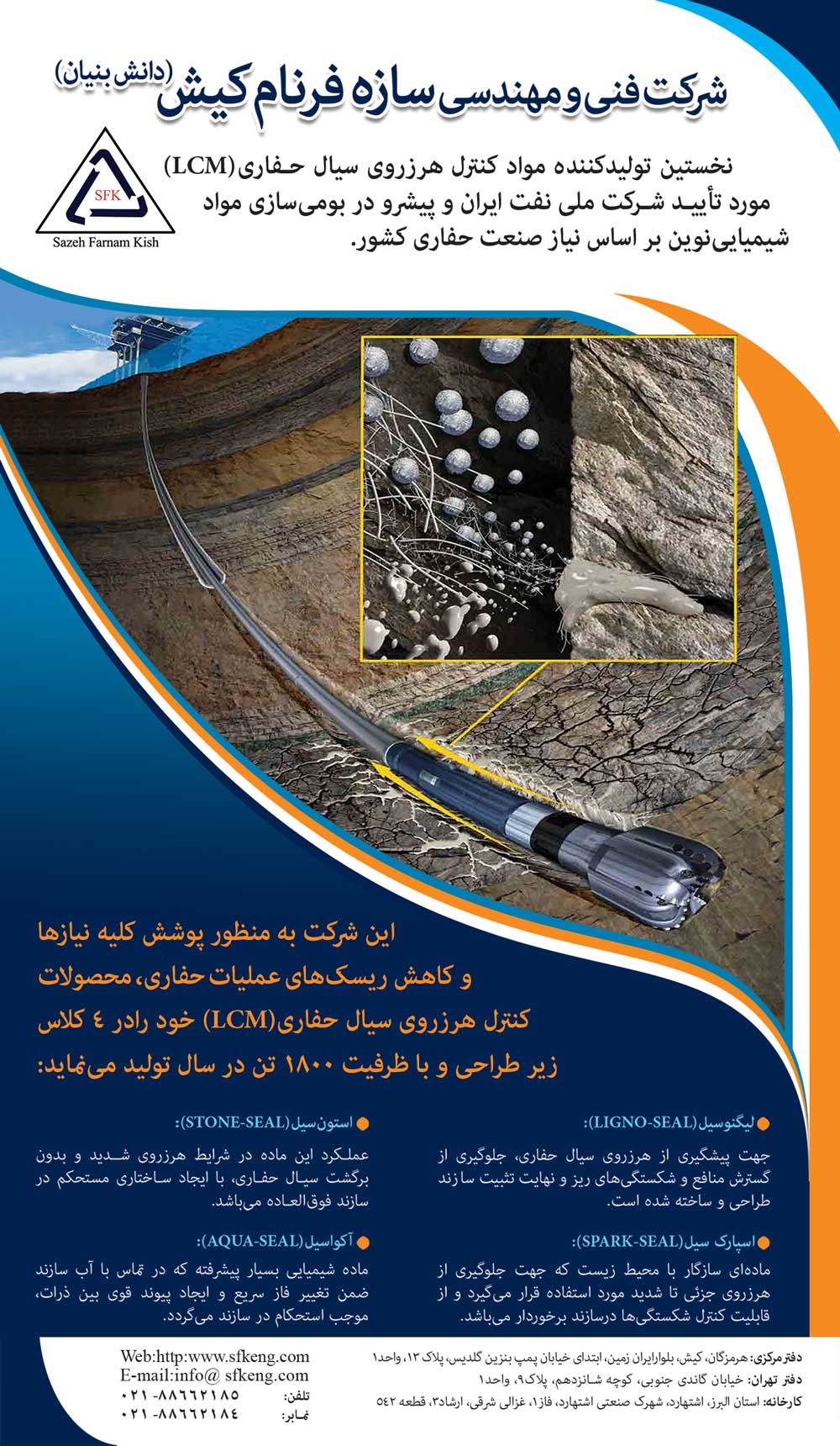 is an innovative and value driven company and the first producer of Lost Circulation Materials (LCM) used in Oil and Gas industry, approved by the National Iranian Oil Company and a leader in the localization of new chemicals based on the needs of the country's drilling industry.